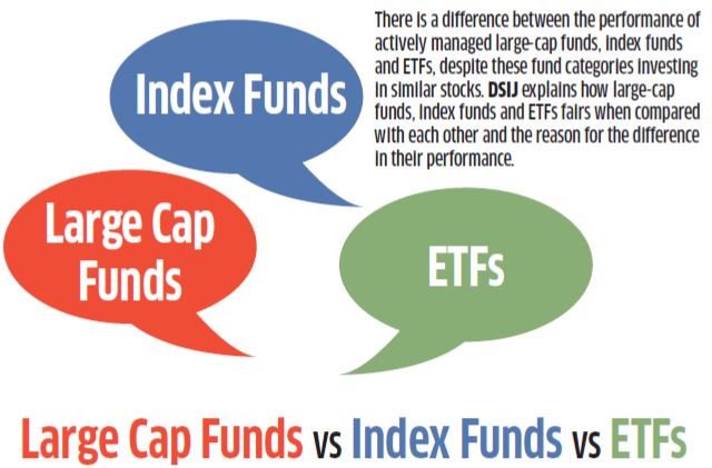 There is a difference between the performance of actively managed large-cap funds, index funds and ETFs, despite these fund categories investing in similar stocks. DSIJ explains how large-cap funds, index funds and ETFs fairs when compared with each other and the reason for the difference in their performance.